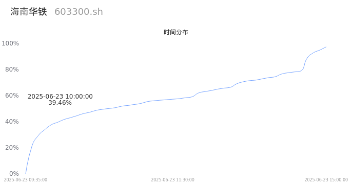 603300海南华铁2025年06月23日成交216.24万手,成交金额20.33亿,相较昨日缩量77.77万手,换手率10.86%,成交活跃。