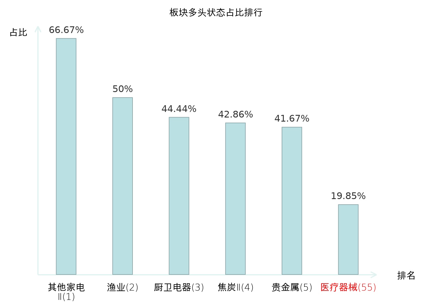 全市场所有行业板块中主力多头状态占比排名中,其他家电Ⅱ板块位居第一。乘用车板块名次提升最快,较昨日上升82位。
