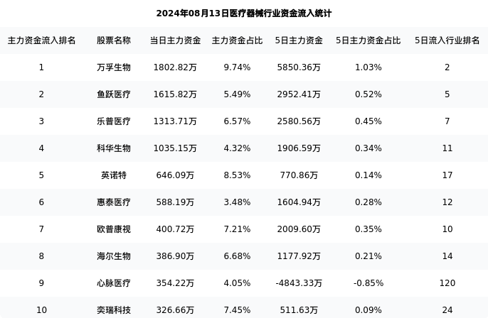 从主力资金流向来看,医疗器械行业今日主力资金流入16.55亿,在所有申万二级行业中排名:56/131。