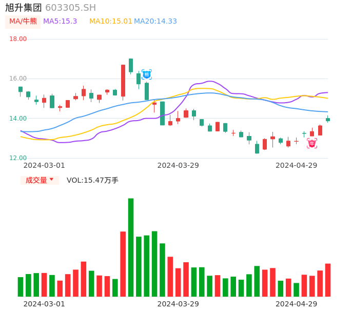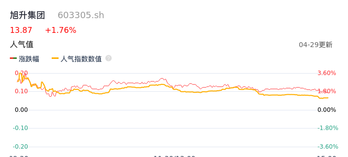 04月29日,旭升集团收报13.87,股价涨幅1.76%,成交金额2.16亿元,换手率1.66%。