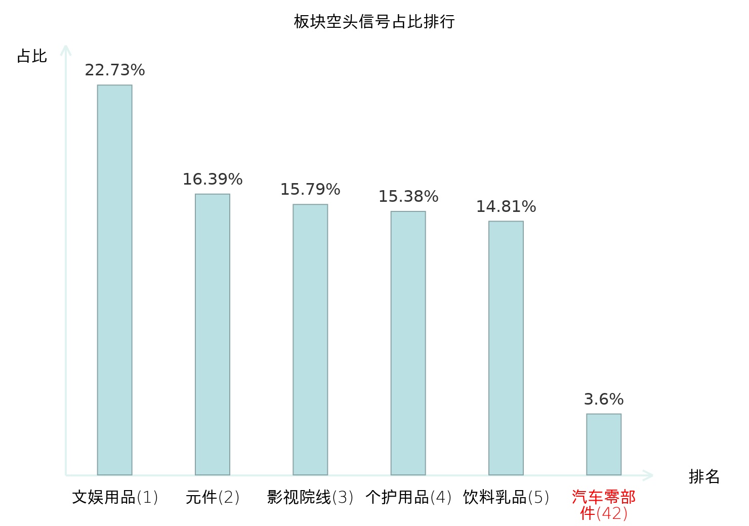 全市场所有行业板块中主力空头信号占比排名中,文娱用品板块位居第一。元件板块名次提升最快,较昨日上升128位。
