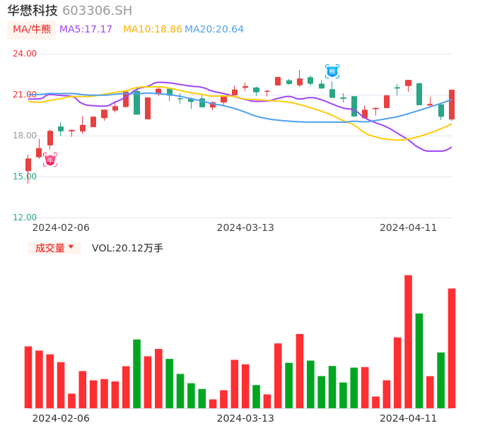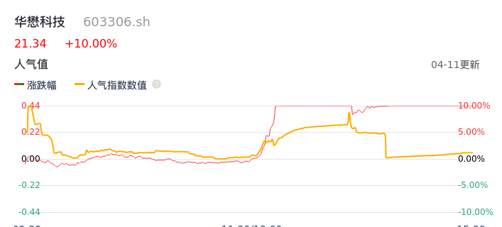 04月11日,华懋科技收报21.34,股价涨幅10.00%,成交金额4.17亿元,换手率6.17%。