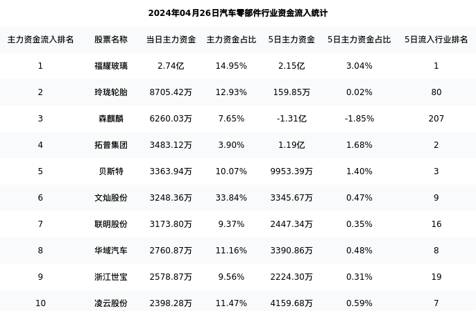 从主力资金流向来看,汽车零部件行业今日主力资金流入118.16亿元,在所有申万二级行业中排名:69/131。