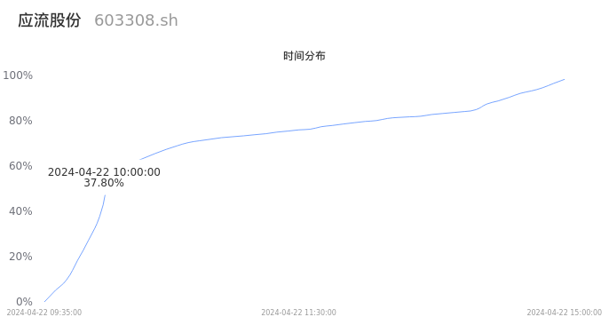根据成交分布分析,该股票当天放量成交,成交清淡。时间上看,早盘前半小时成交量占据当天总成交量的37.8%;价格上看,成交呈现右偏峰。成交分布分析主要研究股票成交的分布特性,不具有预测功能,请知悉。