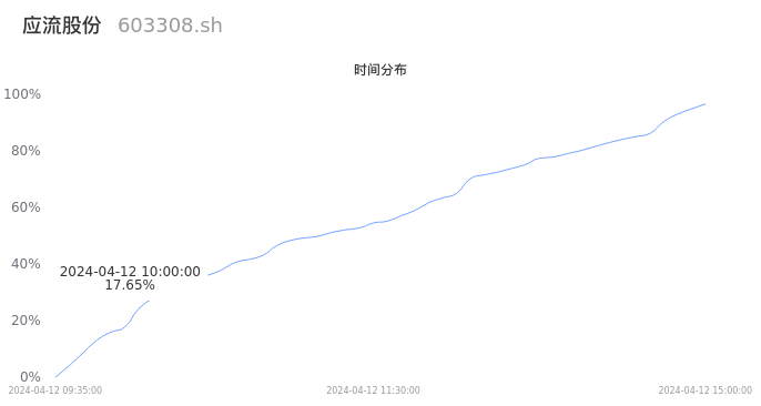603308应流股份2024年04月12日成交10.10万手,成交金额1.33亿元,相较昨日放量8220手,换手率1.48%,成交清淡。