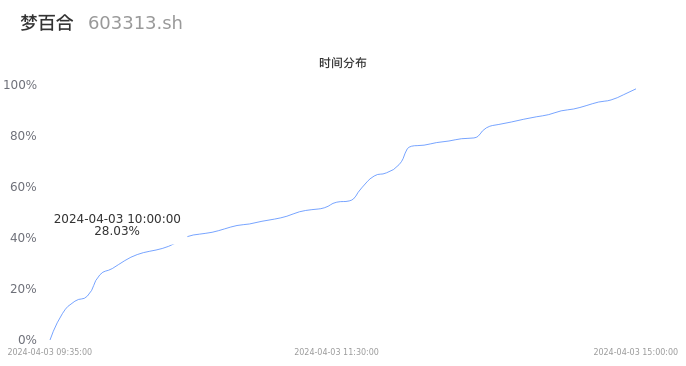 根据成交分布分析,该股票当天缩量成交,成交清淡。时间上看,早盘前半小时成交量占据当天总成交量的28.03%;价格上看,成交呈现中间峰。成交分布分析主要研究股票成交的分布特性,不具有预测功能,请知悉。