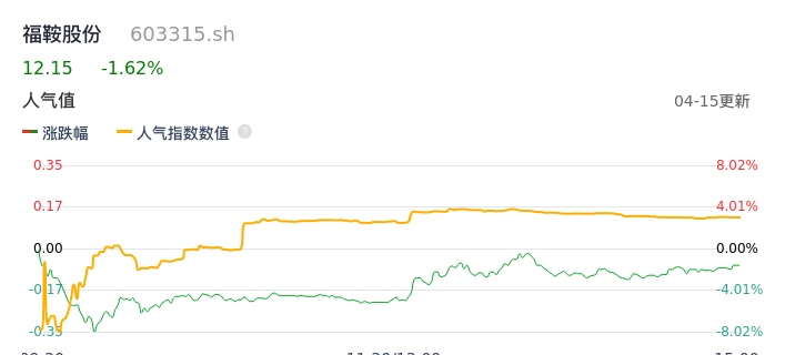 04月15日,福鞍股份收报12.15,股价涨幅-1.62%,成交金额6644.09万元,换手率1.83%。