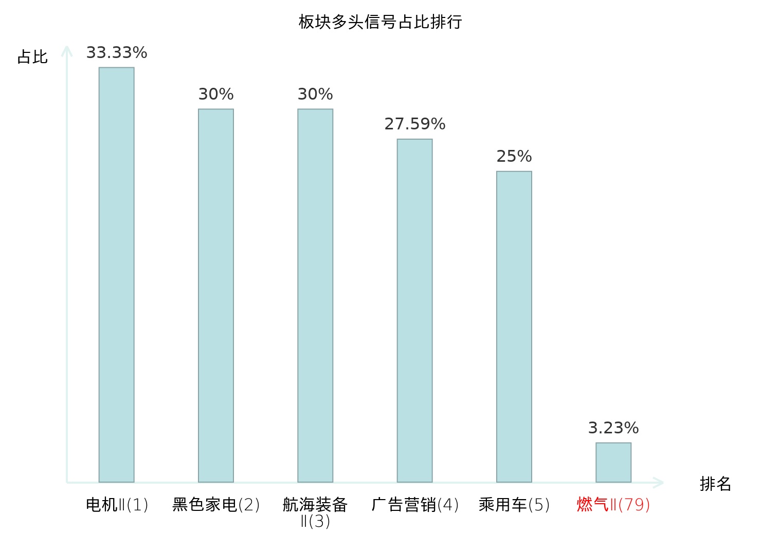 全市场所有行业板块中主力多头信号占比排名中,电机Ⅱ板块位居第一。乘用车板块名次提升最快,较昨日上升114位。