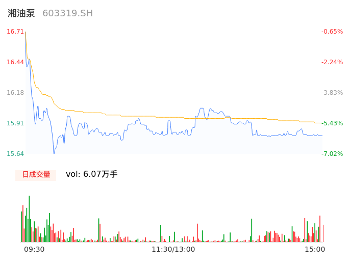 04月16日,湘油泵收报15.80,股价涨幅-6.06%,成交金额9655.70万元,换手率2.93%。