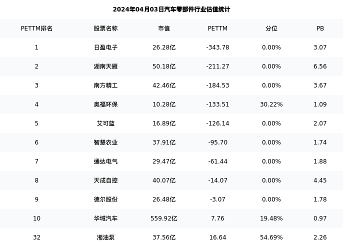 湘油泵最新报告期数据为三季度,下表汇总了汽车零部件行业内市值靠前的公司三季度主要经营数据