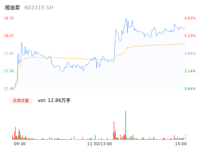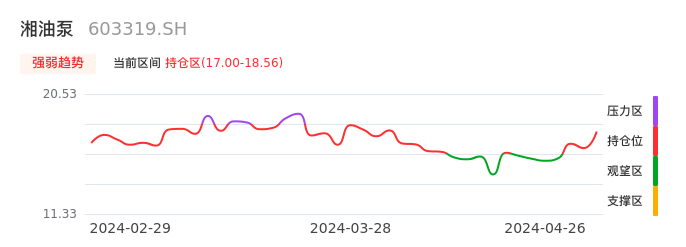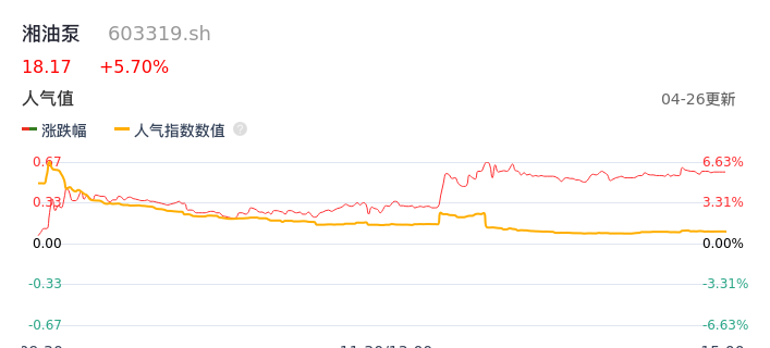 04月26日,湘油泵收报18.17,股价涨幅5.70%,成交金额2.31亿元,换手率6.22%。