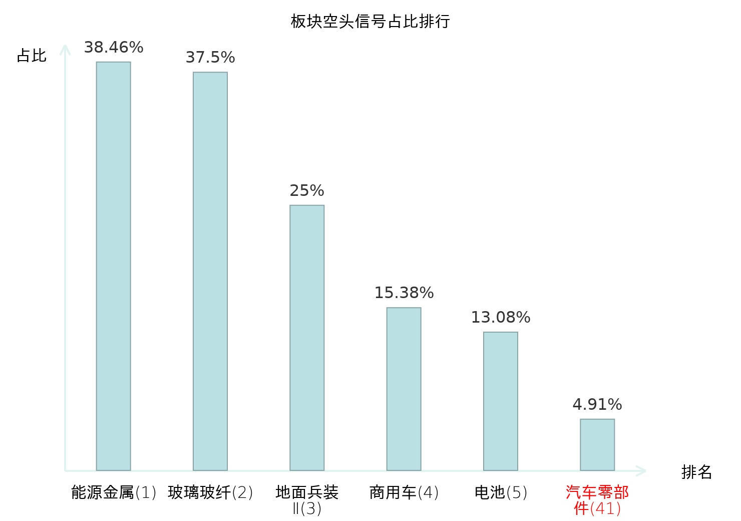 全市场所有行业板块中主力空头信号占比排名中,能源金属板块位居第一。通信服务板块名次提升最快,较昨日上升102位。