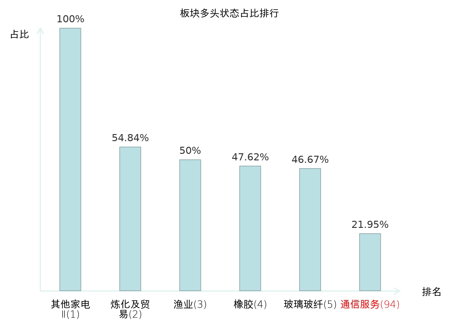 从主力宝信号数据分析,超讯通信所属的通信服务板块中共有9只股票处于主力多头状态,主力多头状态占比在全行业中排名第94位,较昨日下降31位。较高的排名表明主力对于该板块整体看多意愿较强,此次排名下降可能反映了主力对该板块态度的微调。全市场所有行业板块中主力多头状态占比排名中,其他家电Ⅱ板块位居第一;铁路公路板块名次提升最快,较昨日上升37位。这些变化揭示了不同行业间主力资金动向的趋势,为投资者观察市场情绪和潜在投资机会提供了重要参考。