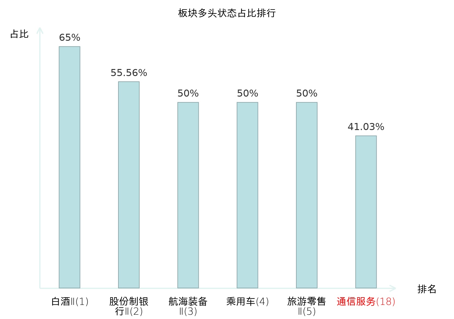 全市场所有行业板块中主力多头状态占比排名中,白酒Ⅱ板块位居第一。其他家电Ⅱ板块名次提升最快,较昨日上升93位。