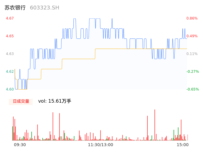 04月11日,苏农银行收报4.65,股价涨幅0.43%,成交金额7242.17万元,换手率1.01%。