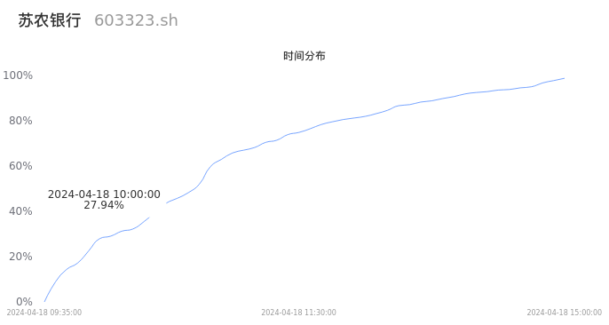 603323苏农银行2024年04月18日成交29.46万手,成交金额1.41亿元,相较昨日缩量7.95万手,换手率1.91%,成交清淡。