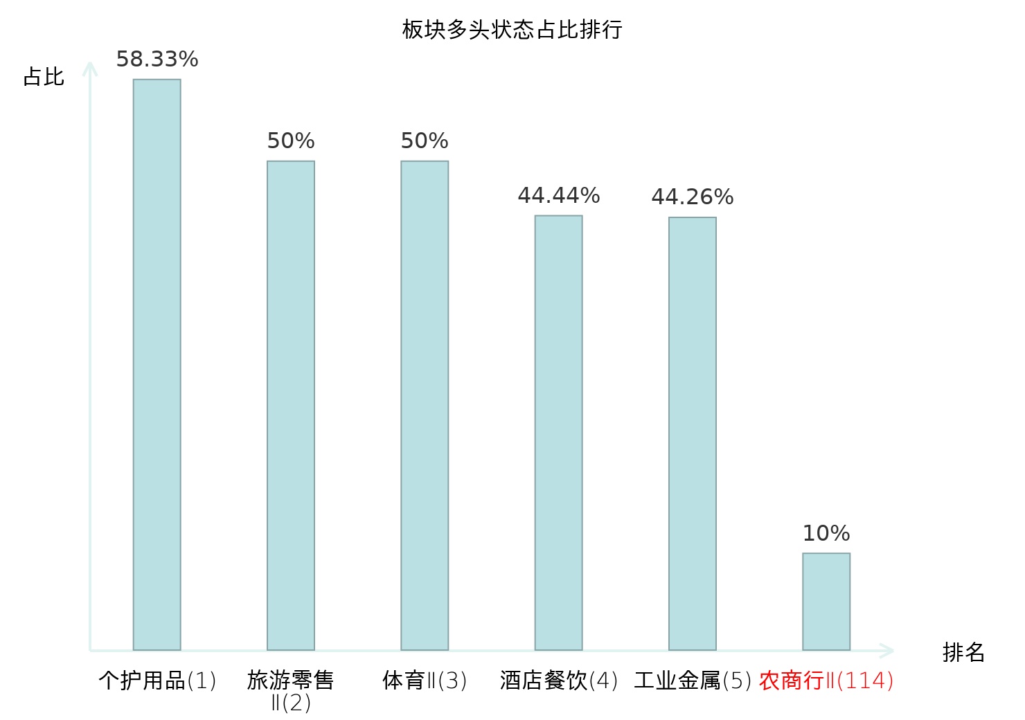 全市场所有行业板块中主力多头状态占比排名中,个护用品板块位居第一。非白酒板块名次提升最快,较昨日上升65位。