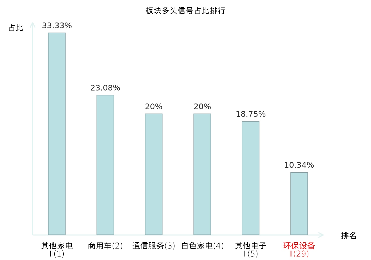 全市场所有行业板块中主力多头信号占比排名中,其他家电Ⅱ板块位居第一。其他家电Ⅱ板块名次提升最快,较昨日上升129位。
