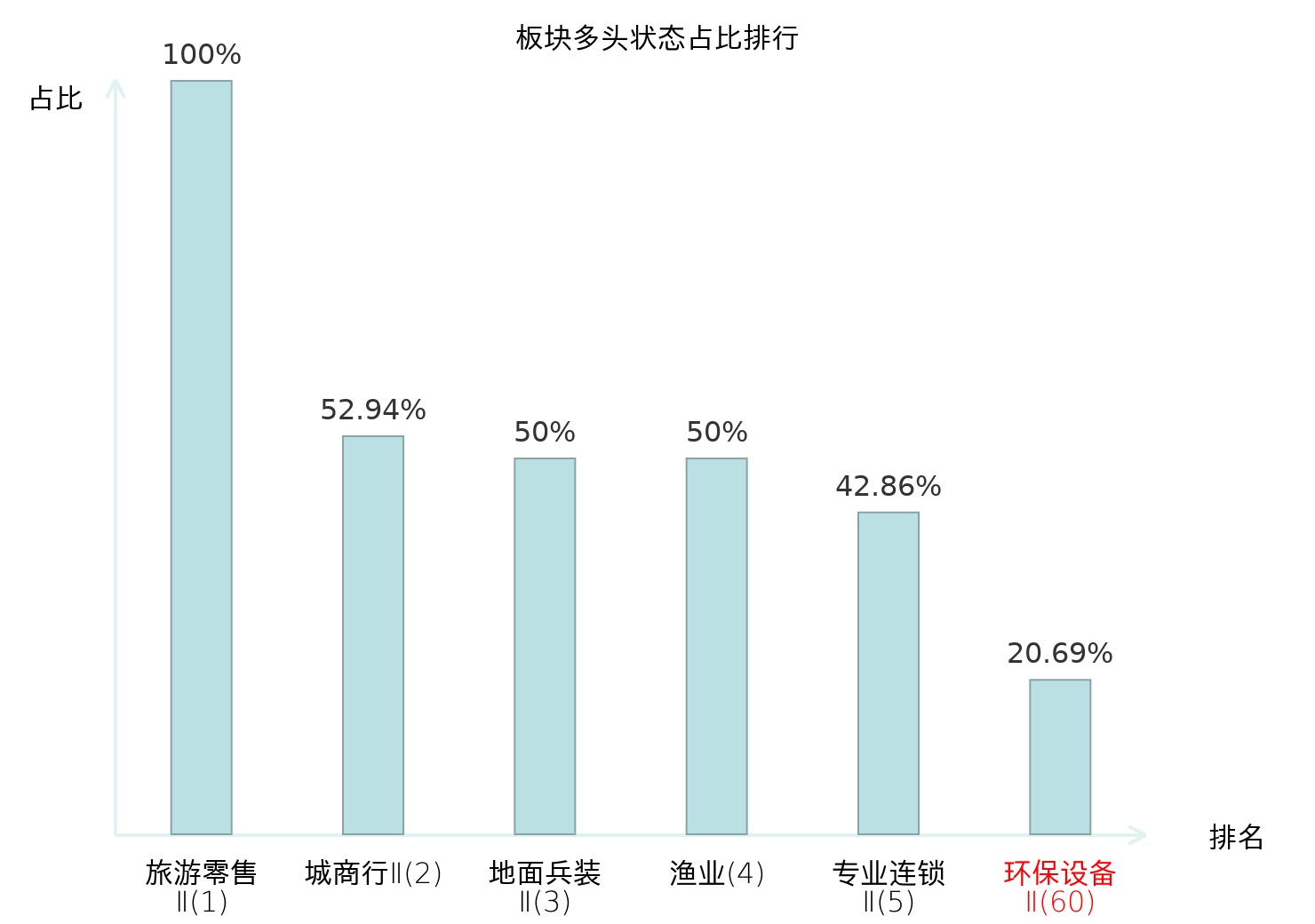 全市场所有行业板块中主力多头状态占比排名中,旅游零售Ⅱ板块位居第一。旅游及景区板块名次提升最快,较昨日上升69位。