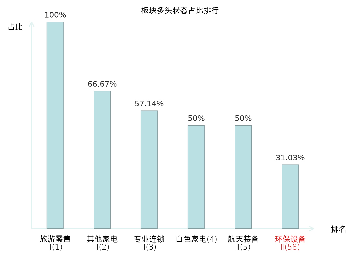 全市场所有行业板块中主力多头状态占比排名中,旅游零售Ⅱ板块位居第一。股份制银行Ⅱ板块名次提升最快,较昨日上升79位。