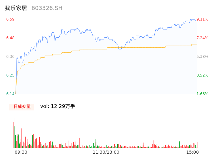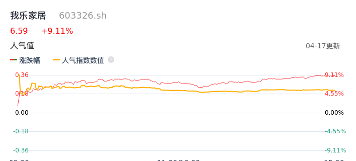 04月17日,我乐家居收报6.59,股价涨幅9.11%,成交金额7914.46万元,换手率3.90%。