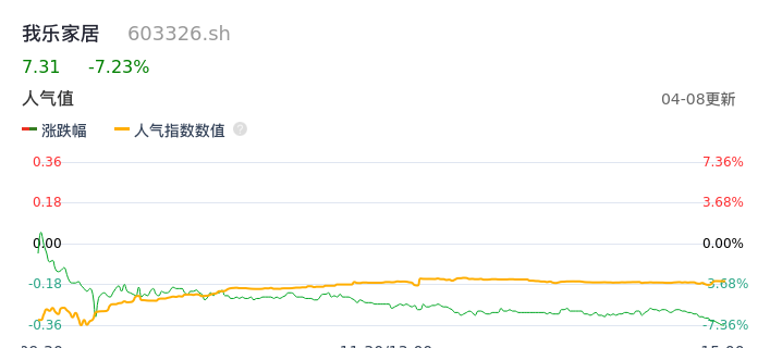 04月08日,我乐家居收报7.31,股价涨幅-7.23%,成交金额1.24亿元,换手率5.21%。