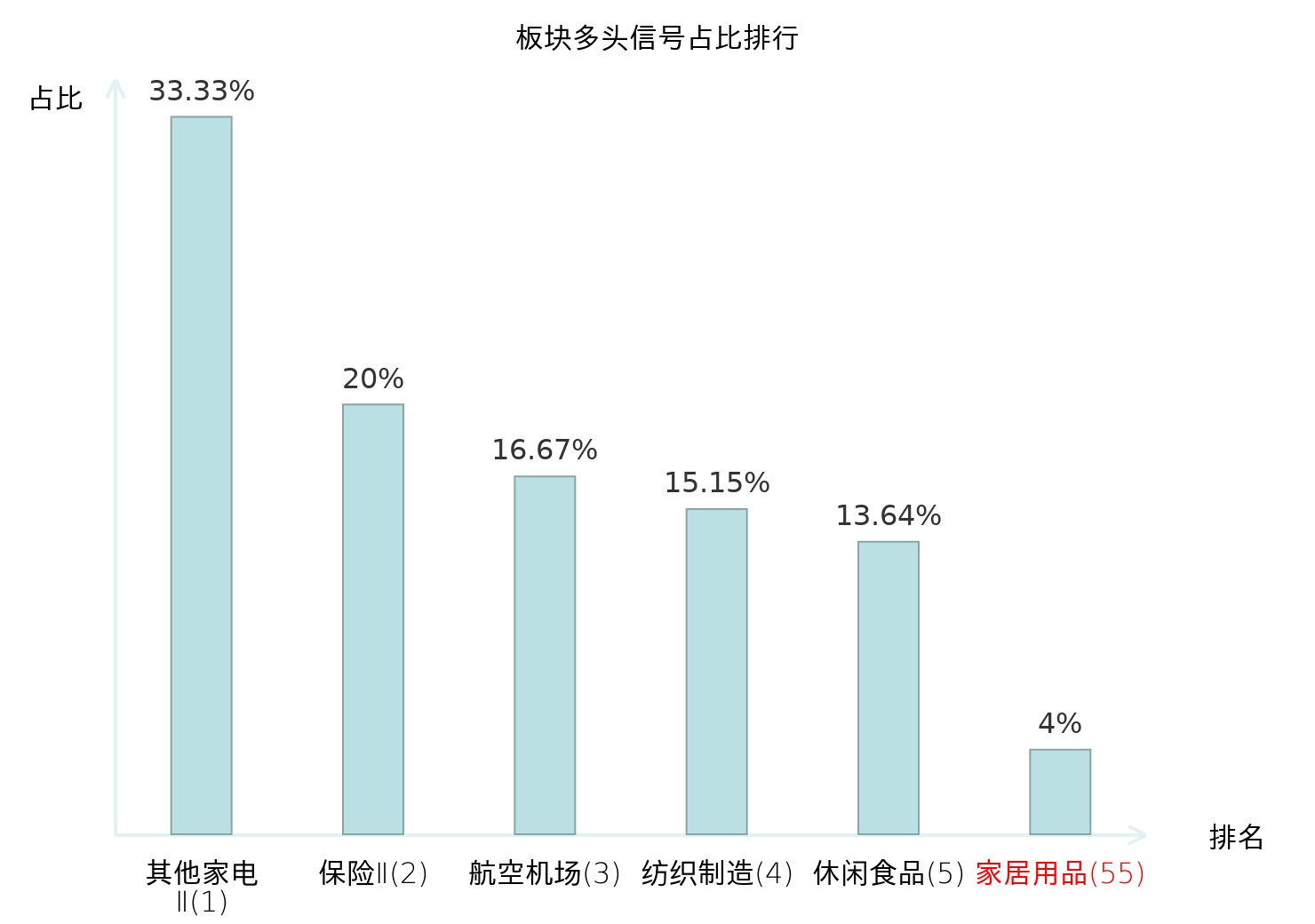 全市场所有行业板块中主力多头信号占比排名中,其他家电Ⅱ板块位居第一。其他家电Ⅱ板块名次提升最快,较昨日上升128位。