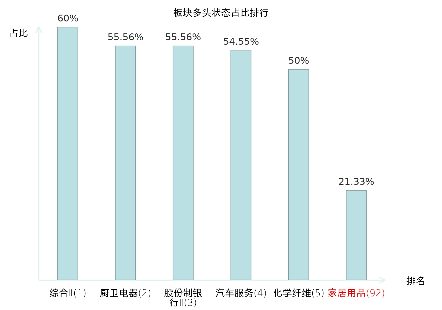 全市场所有行业板块中主力多头状态占比排名中,综合Ⅱ板块位居第一。出版板块名次提升最快,较昨日上升55位。