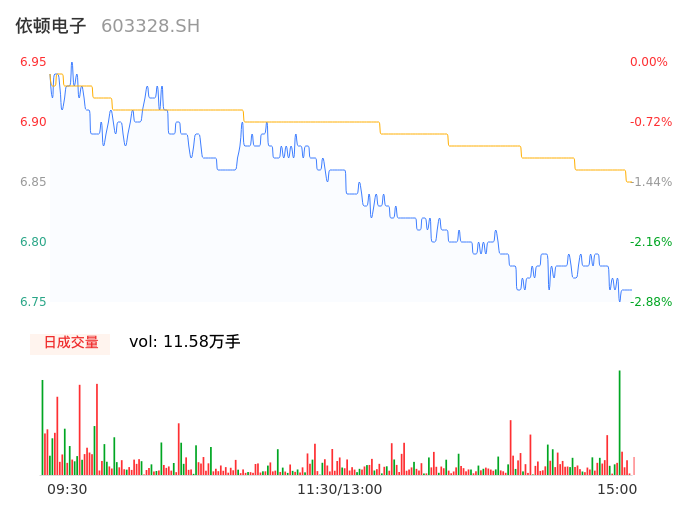 04月08日,依顿电子收报6.76,股价涨幅-2.73%,成交金额7939.76万元,换手率1.16%。