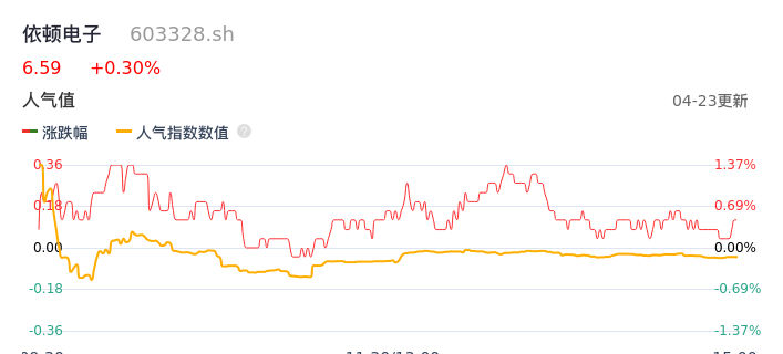 04月23日,依顿电子收报6.59,股价涨幅0.30%,成交金额5252.06万元,换手率0.80%。