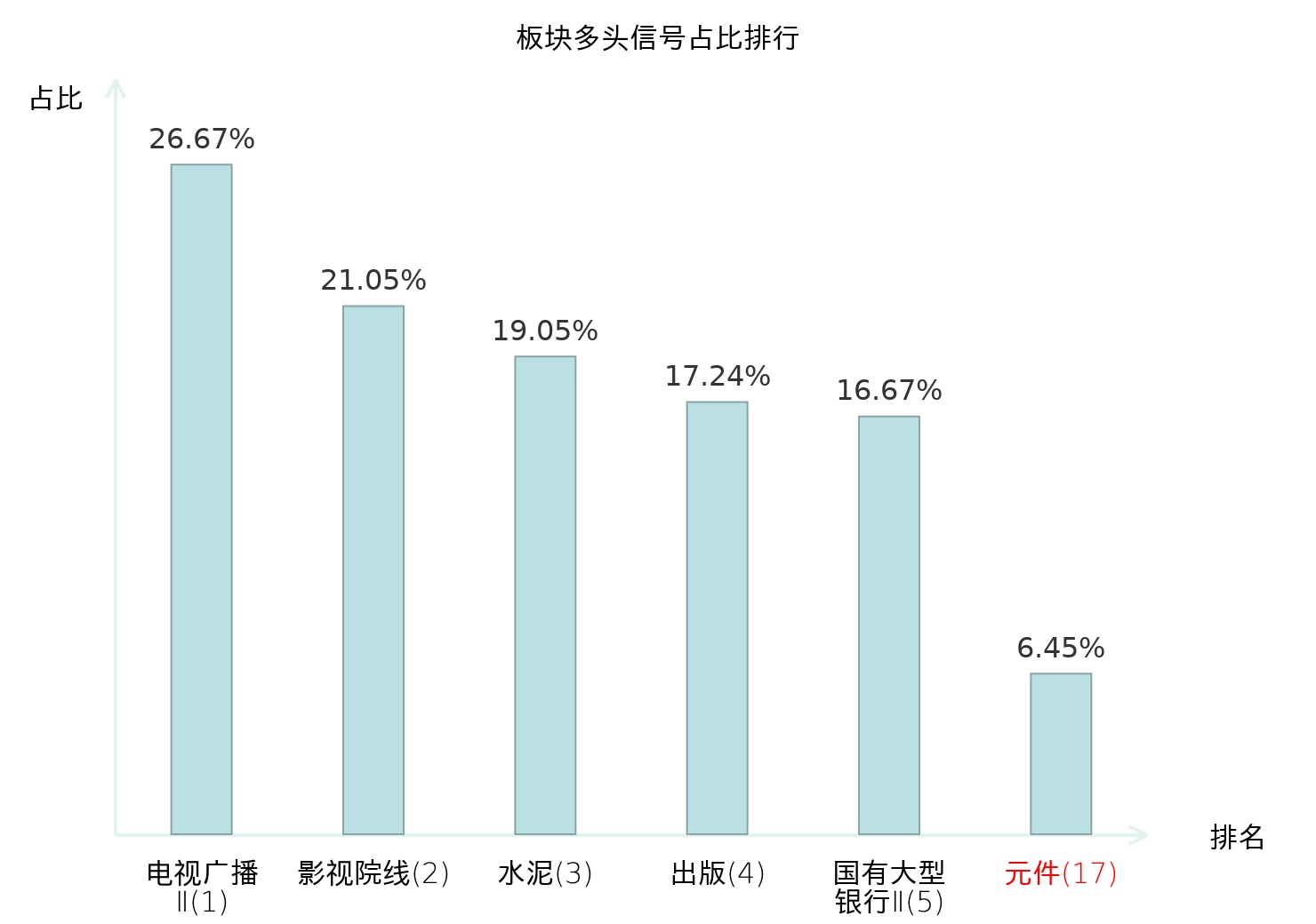 从主力宝信号数据分析,依顿电子所属的元件板块中共4只股票发出主力多头信号,主力多头信号占比在全行业中排名第17位,较昨日上升27位;较高的排名表明主力对于该板块整体看多意愿较强,此次排名显著上升反映出主力对该板块态度趋于积极;全市场所有行业板块中主力多头信号占比排名中,电视广播Ⅱ板块位居第一;国有大型银行Ⅱ板块名次提升最快,较昨日上升118位;这些变动揭示了不同行业间主力资金动向的结构性变化,为投资者评估板块相对强度及潜在关注方向提供了客观依据。
