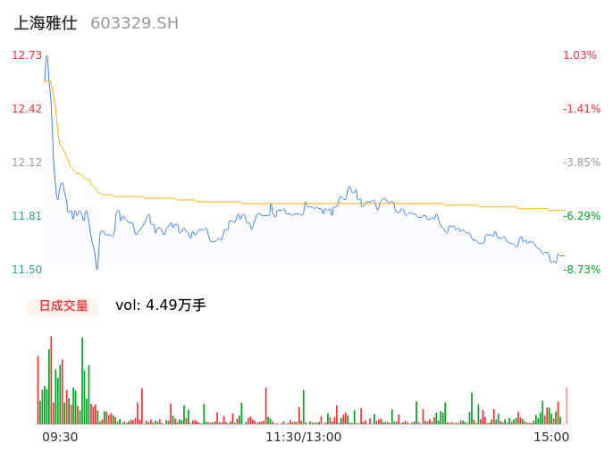 04月16日,上海雅仕收报11.78,股价涨幅-6.51%,成交金额5313.79万元,换手率2.83%。