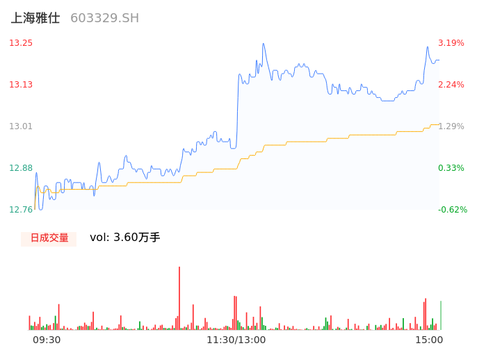 04月29日,上海雅仕收报13.19,股价涨幅2.73%,成交金额4685.15万元,换手率2.27%。