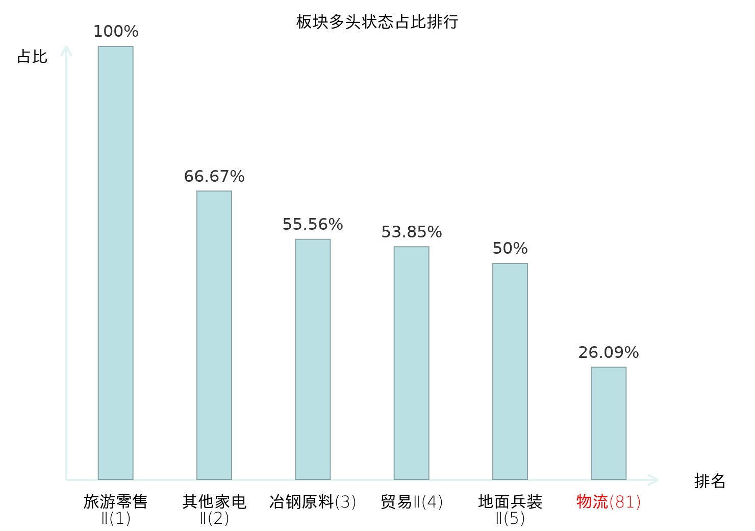 全市场所有行业板块中主力多头状态占比排名中,旅游零售Ⅱ板块位居第一。房屋建设Ⅱ板块名次提升最快,较昨日上升58位。