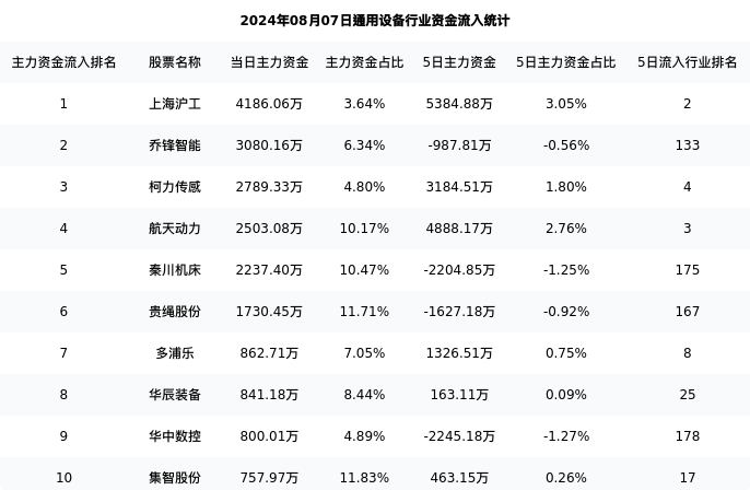从主力资金流向来看,通用设备行业今日主力资金流入36.94亿,在所有申万二级行业中排名:84/131。