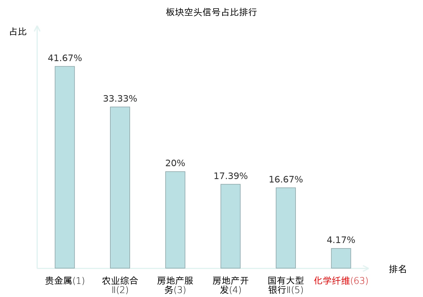 全市场所有行业板块中主力空头信号占比排名中,贵金属板块位居第一。包装印刷板块名次提升最快,较昨日上升112位。