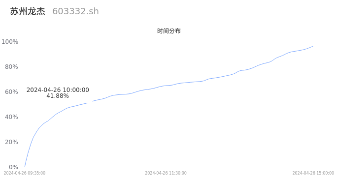 根据成交分布分析,该股票当天放量成交,成交清淡。时间上看,早盘前半小时成交量占据当天总成交量的41.88%;价格上看,成交呈现中间峰。成交分布分析主要研究股票成交的分布特性,不具有预测功能,请知悉。