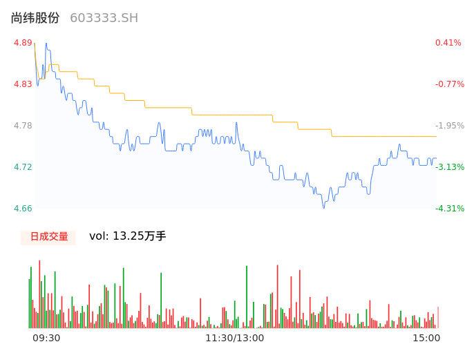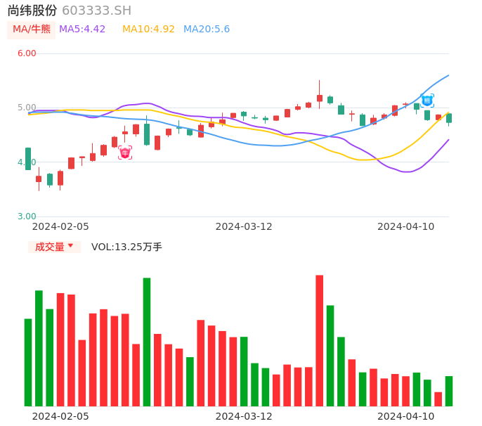 04月10日,尚纬股份收报4.73,股价涨幅-2.87%,成交金额6304.48万元,换手率2.13%。