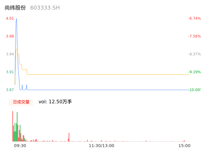 04月16日,尚纬股份收报3.87,股价涨幅-10.00%,成交金额4872.88万元,换手率2.01%。