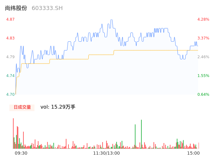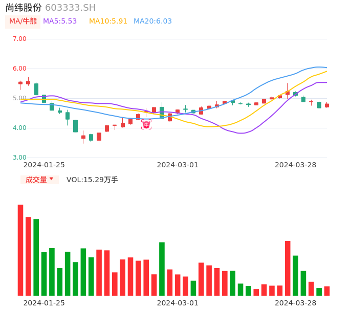 03月28日,尚纬股份收报4.81,股价涨幅3.00%,成交金额7341.69万元,换手率2.46%。