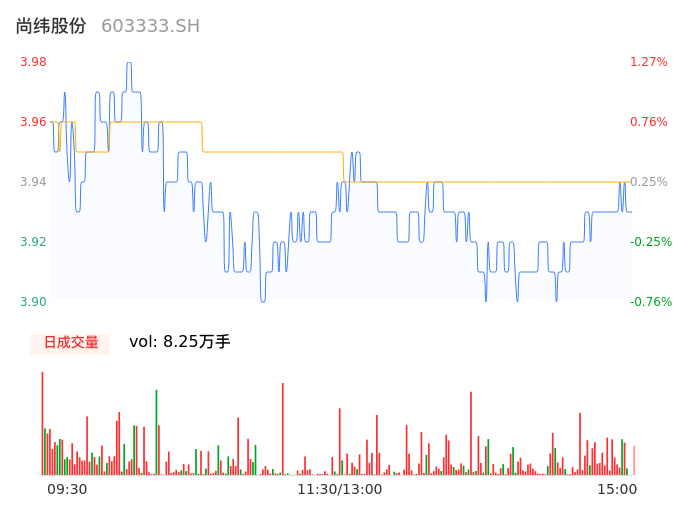 04月23日,尚纬股份收报3.93,股价涨幅0.00%,成交金额3247.06万元,换手率1.33%。