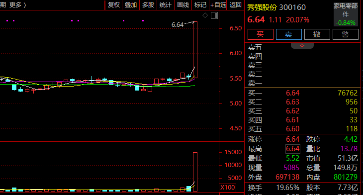 风电概念同样高开走强,板块指数连续第8日上涨,创2015年6月以来10年的新高。克莱特30%涨停,大连重工、尚纬股份、康达新材、赛伍技术等亦强势封板。