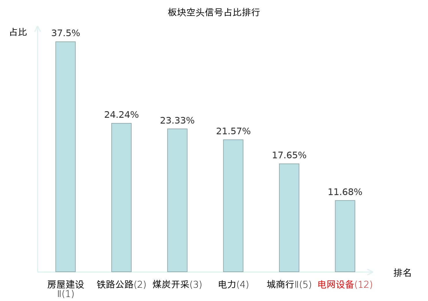 全市场所有行业板块中主力空头信号占比排名中,房屋建设Ⅱ板块位居第一。煤炭开采板块名次提升最快,较昨日上升117位。