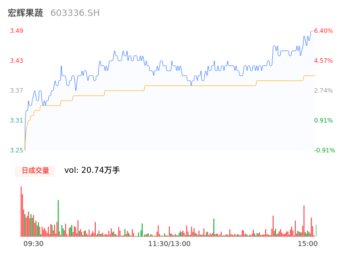 04月17日,宏辉果蔬收报3.48,股价涨幅6.10%,成交金额7049.08万元,换手率3.64%。