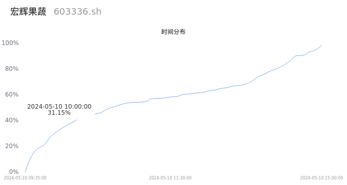 603336宏辉果蔬2024年05月10日成交8.63万手,成交金额3352.30万元,相较昨日缩量1.64万手,换手率1.51%,成交清淡。