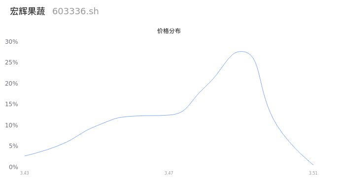然后我们来看下当日成交的价格分布。经过分析发现,该股票当日成交价格波动低于10个最小波动价位,由于可以参考的样本量非常少,价格分布分析的结果不具有指导意义,下图仅供参考。