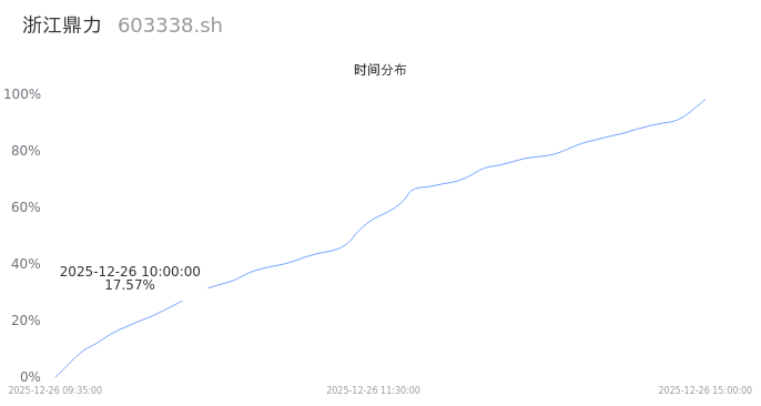 603338浙江鼎力2025年12月26日成交5.85万手,成交金额3.29亿,相较昨日缩量1340手,换手率1.15%,成交清淡。
