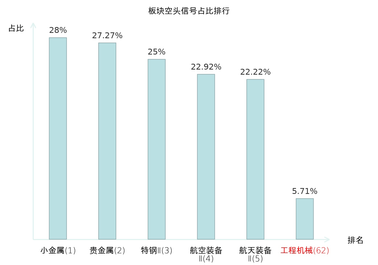 全市场所有行业板块中主力空头信号占比排名中,小金属板块位居第一。铁路公路板块名次提升最快,较昨日上升113位。