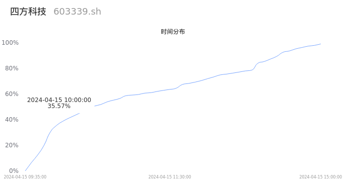 根据成交分布分析,该股票当天放量成交,成交清淡。时间上看,早盘前半小时成交量占据当天总成交量的35.57%;价格上看,成交呈现中间峰。成交分布分析主要研究股票成交的分布特性,不具有预测功能,请知悉。