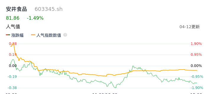 04月12日,安井食品收报81.86,股价涨幅-1.49%,成交金额1.88亿元,换手率0.78%。